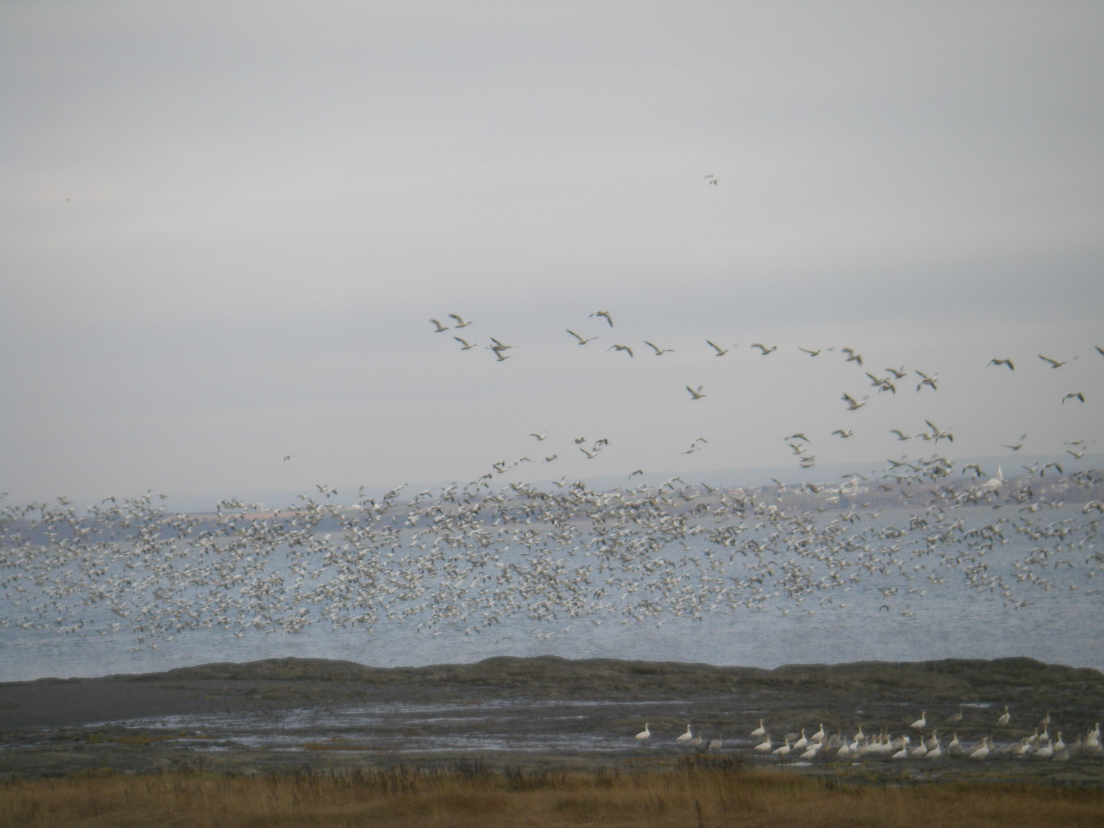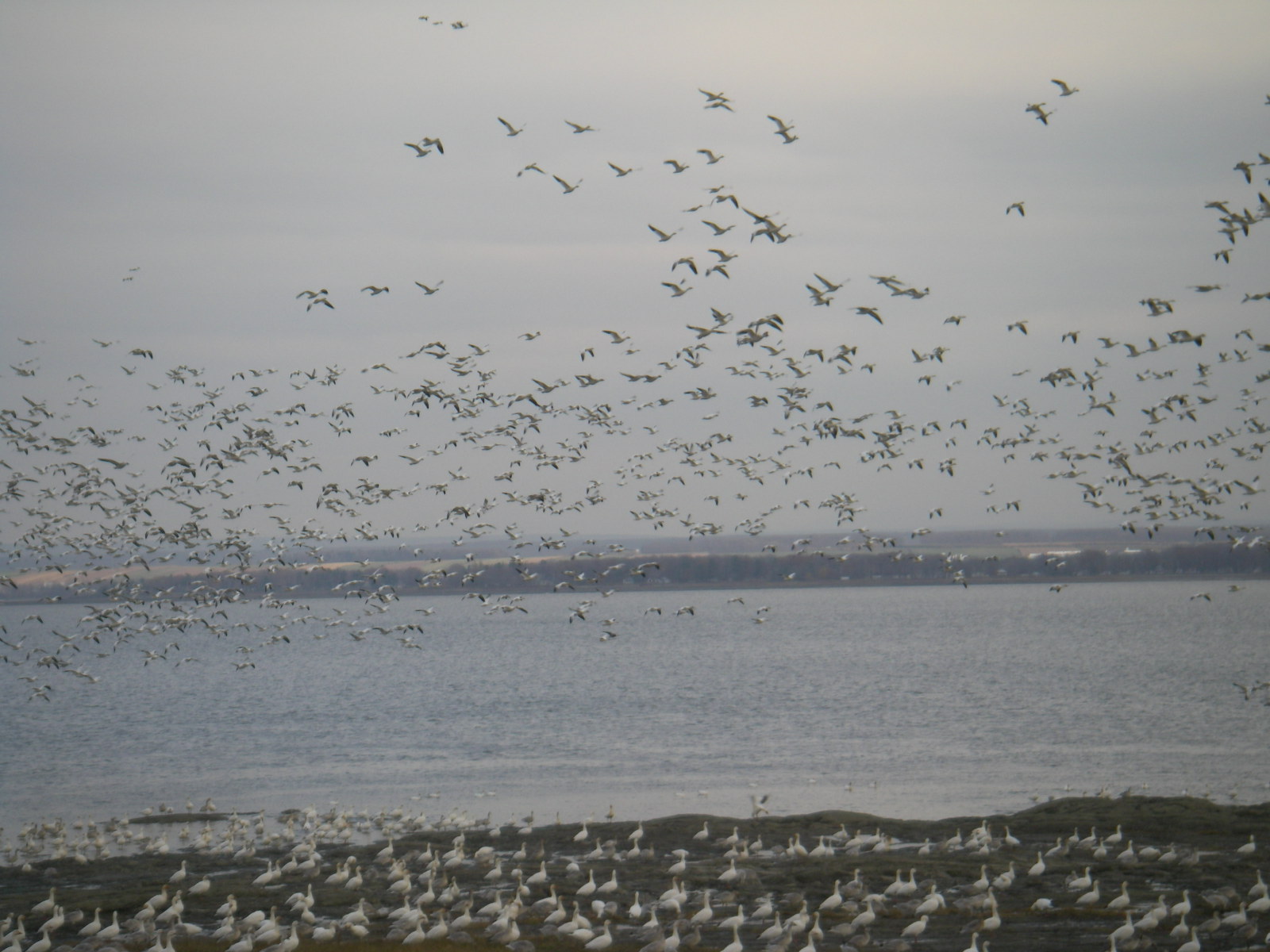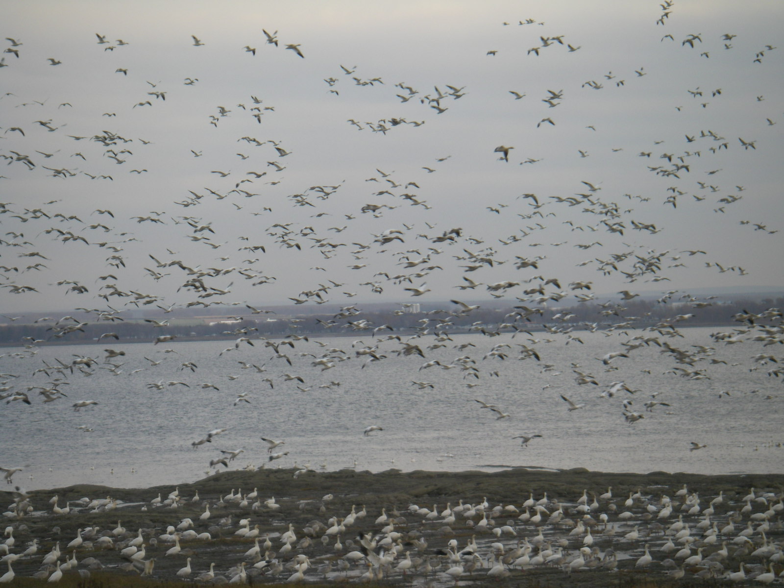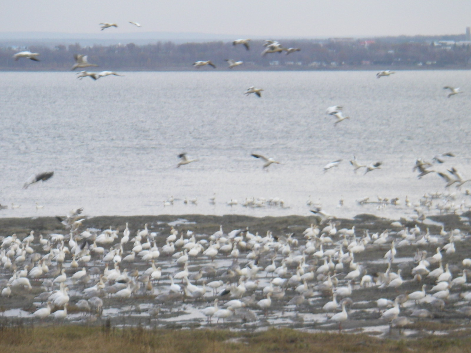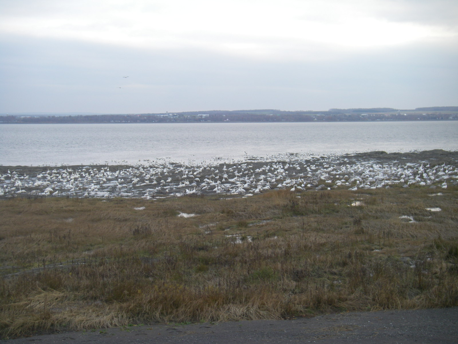 Elles sont arrivées de loin, dans une apparence de désordre, mais en formation distinctive, déferlantes, bruyantes, impressionnantes, pour ensuite se fondre dans le décor, comme sur un paravent chinois, sereines et posées. Inspirées par un temps magnifique, mon amie de Québec et moi, sommes allées sans le savoir à la rencontre de ces oies blanches. Nous n'en sommes pas encore revenues de notre chance inouïe.