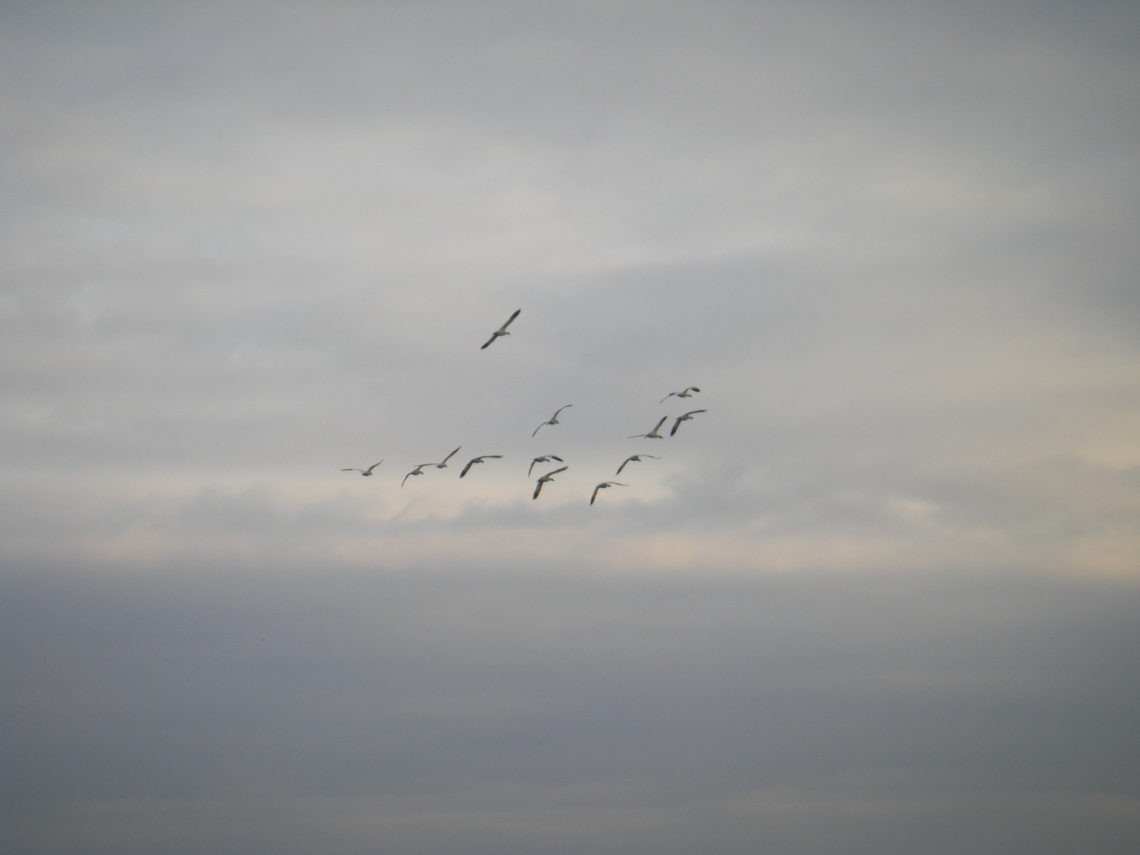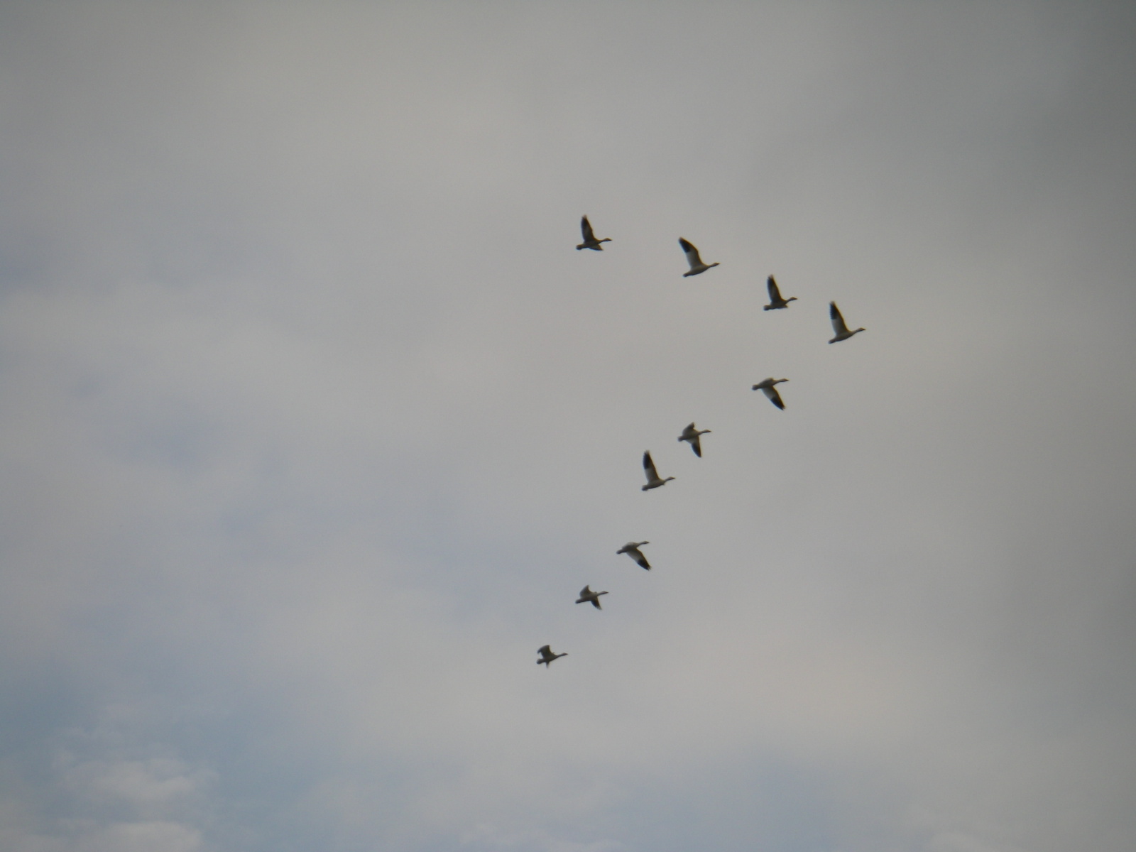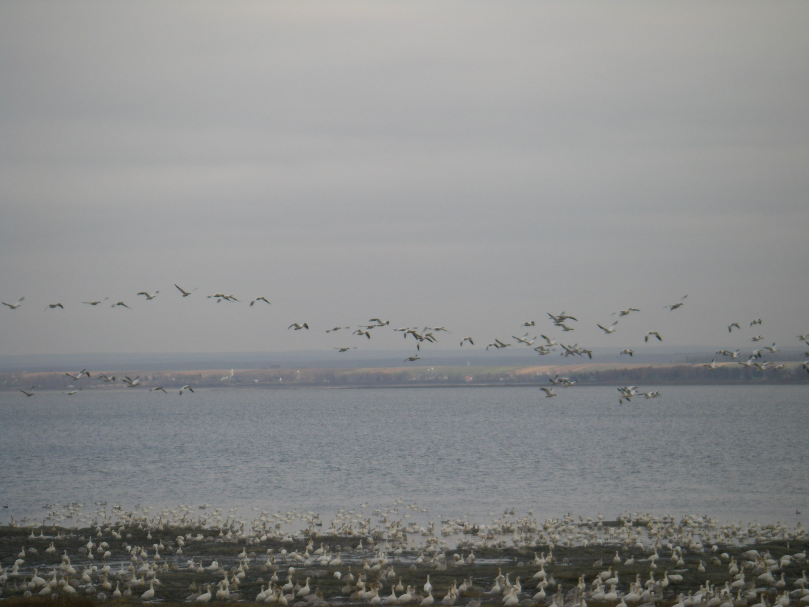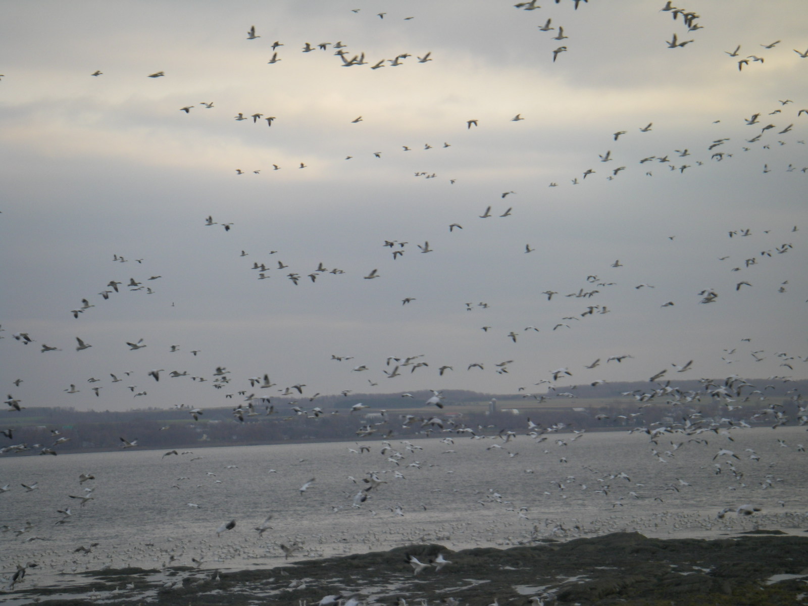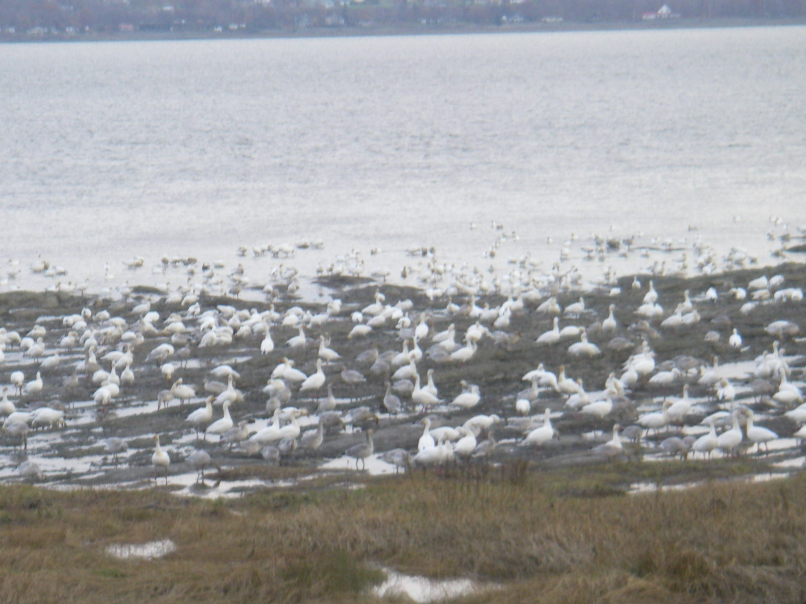 Elles sont arrivées de loin, dans une apparence de désordre, mais en formation distinctive, déferlantes, bruyantes, impressionnantes, pour ensuite se fondre dans le décor, comme sur un paravent chinois, sereines et posées. Inspirées par un temps magnifique, mon amie de Québec et moi, sommes allées sans le savoir à la rencontre de ces oies blanches. Nous n'en sommes pas encore revenues de notre chance inouïe.