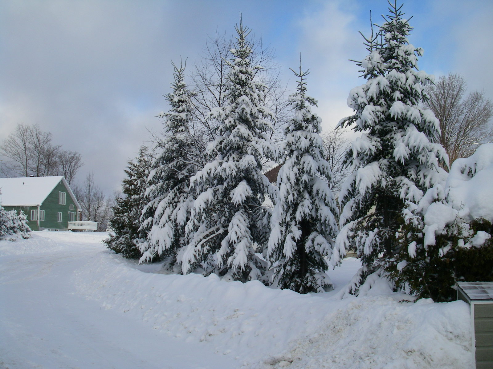 Sous la pluie à Montréal, vendredi soir, nous sommes arrivés à la campagne dans un décor d'hiver féérique. Déjà tant de neige, sur les toits et les sapins majestueux!