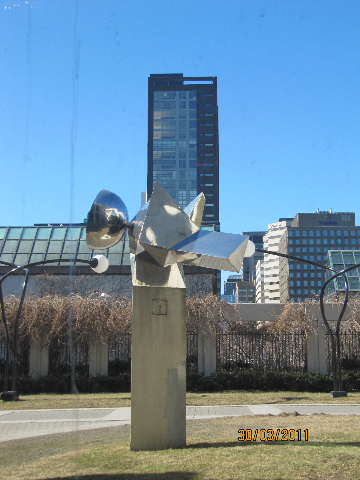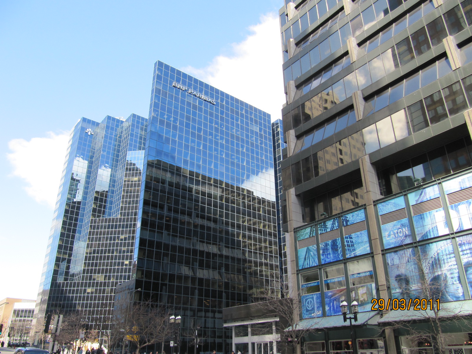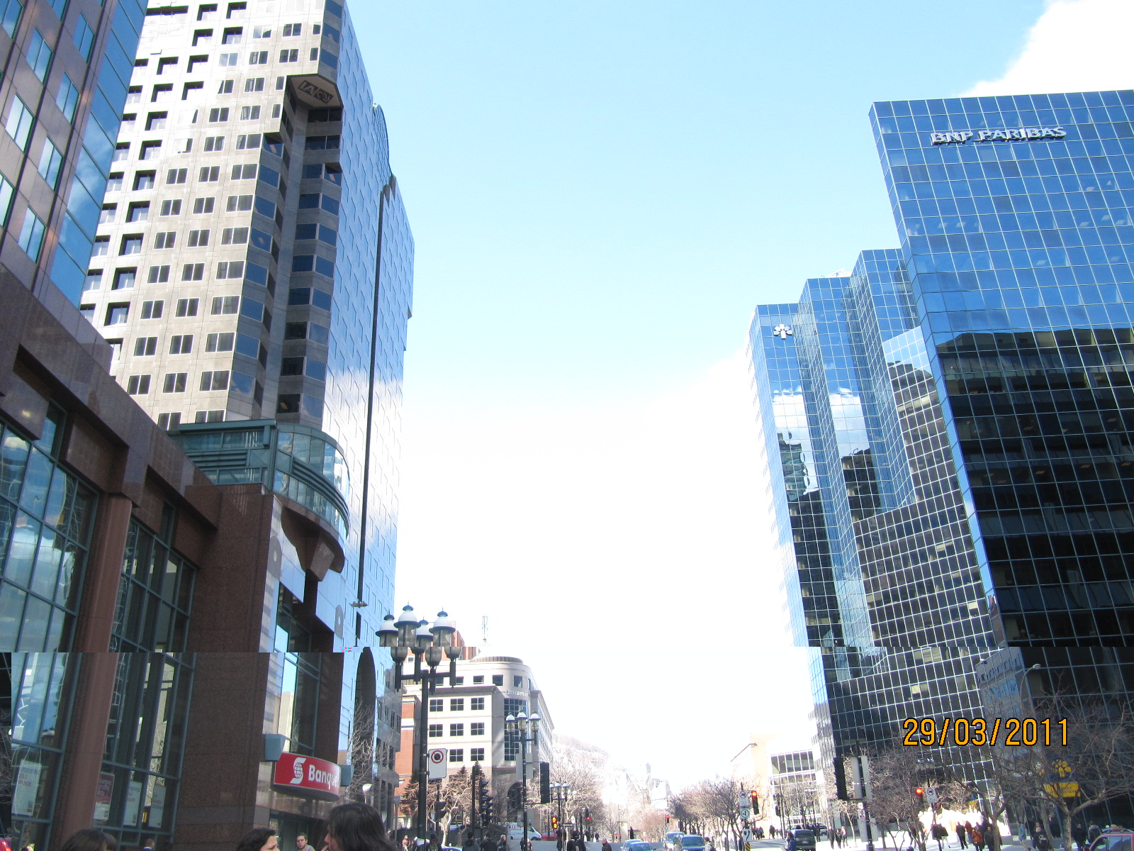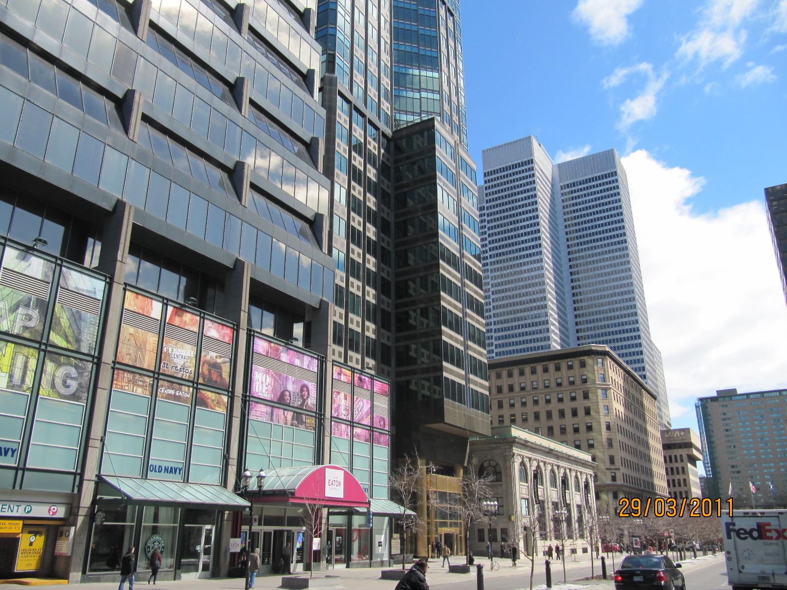 Sur l'avenue McGill, avec une perspective sur le Mont Royal d'une part, et les entrailles de la Place Ville-Marie de l'autre, la Cité dans toute sa puissance de verre et de vert (billet vert)