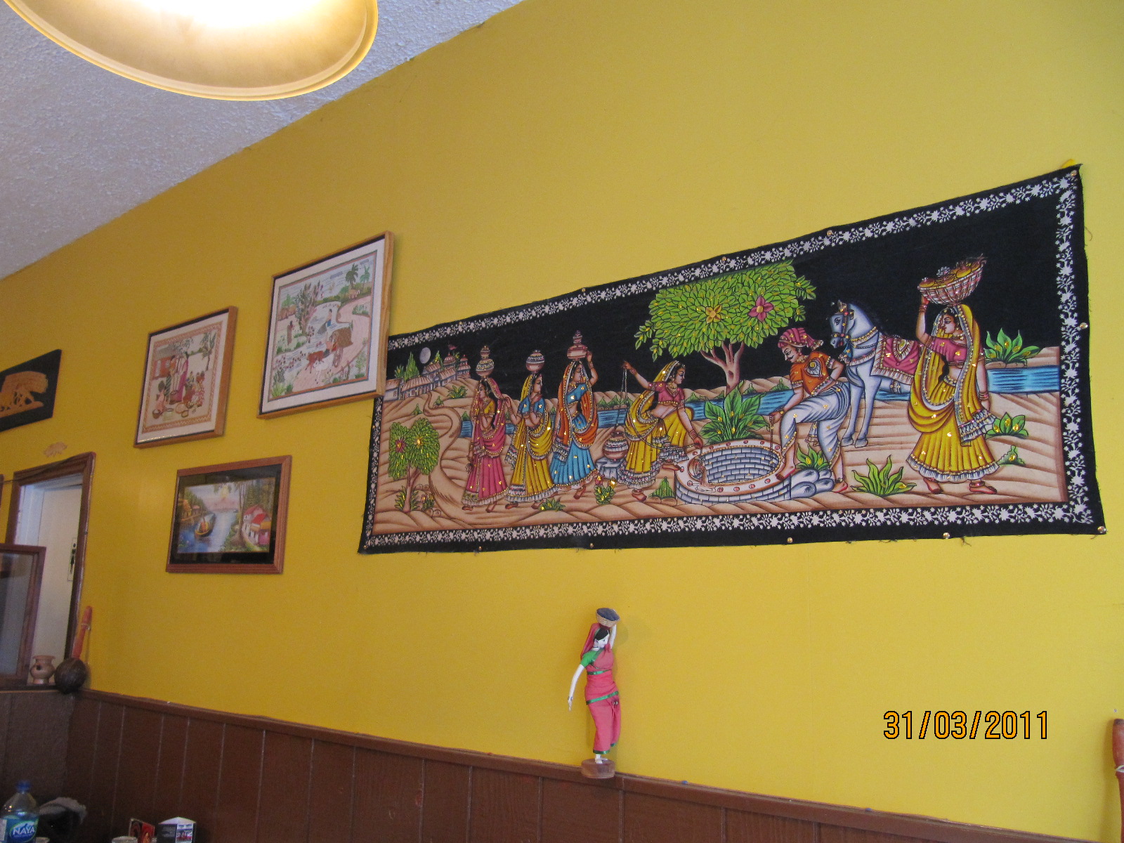 Croiser fils premier à la banque, manger pour la première fois avec Lui à ce restaurant indien. Le poulet tikka marsala baigne dans une sauce couleur orange peu appétissant, mais le pain Nan est chaud et bon.