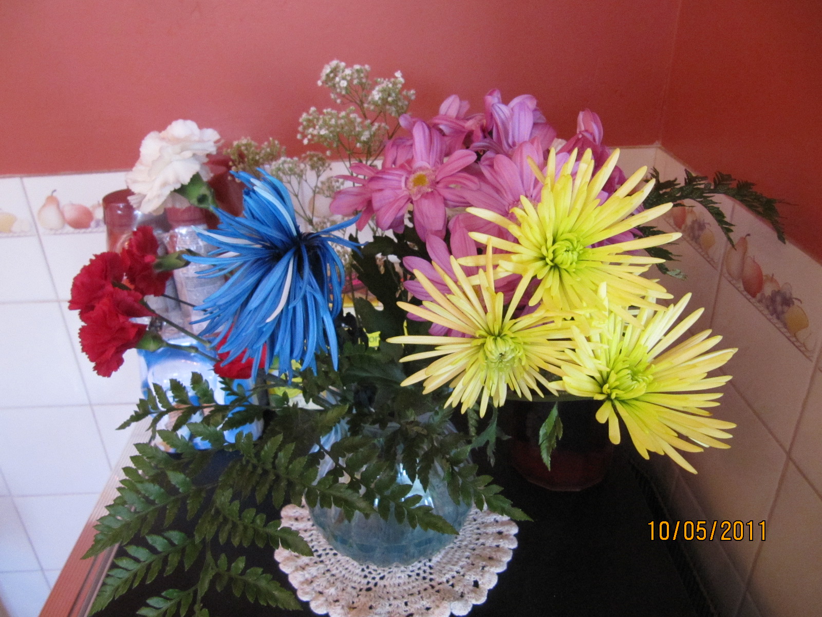 Le dimanche de la fête des mères, mon bras souffrant n'a pas aidé à mon humeur exaspérant qui s'est heureusement éclairci à l'arrivée des invités aux bras chargés d'arrangements floraux.