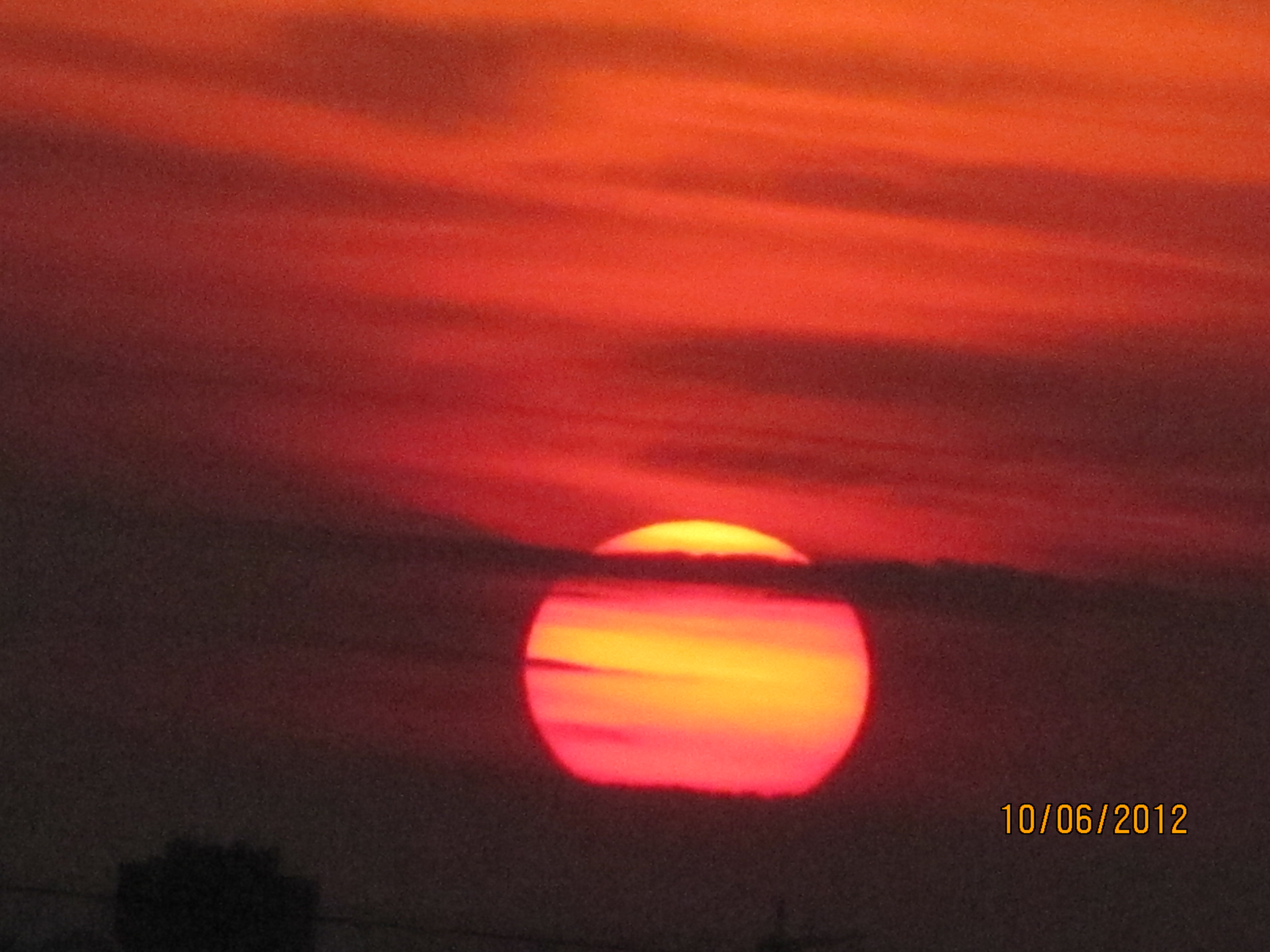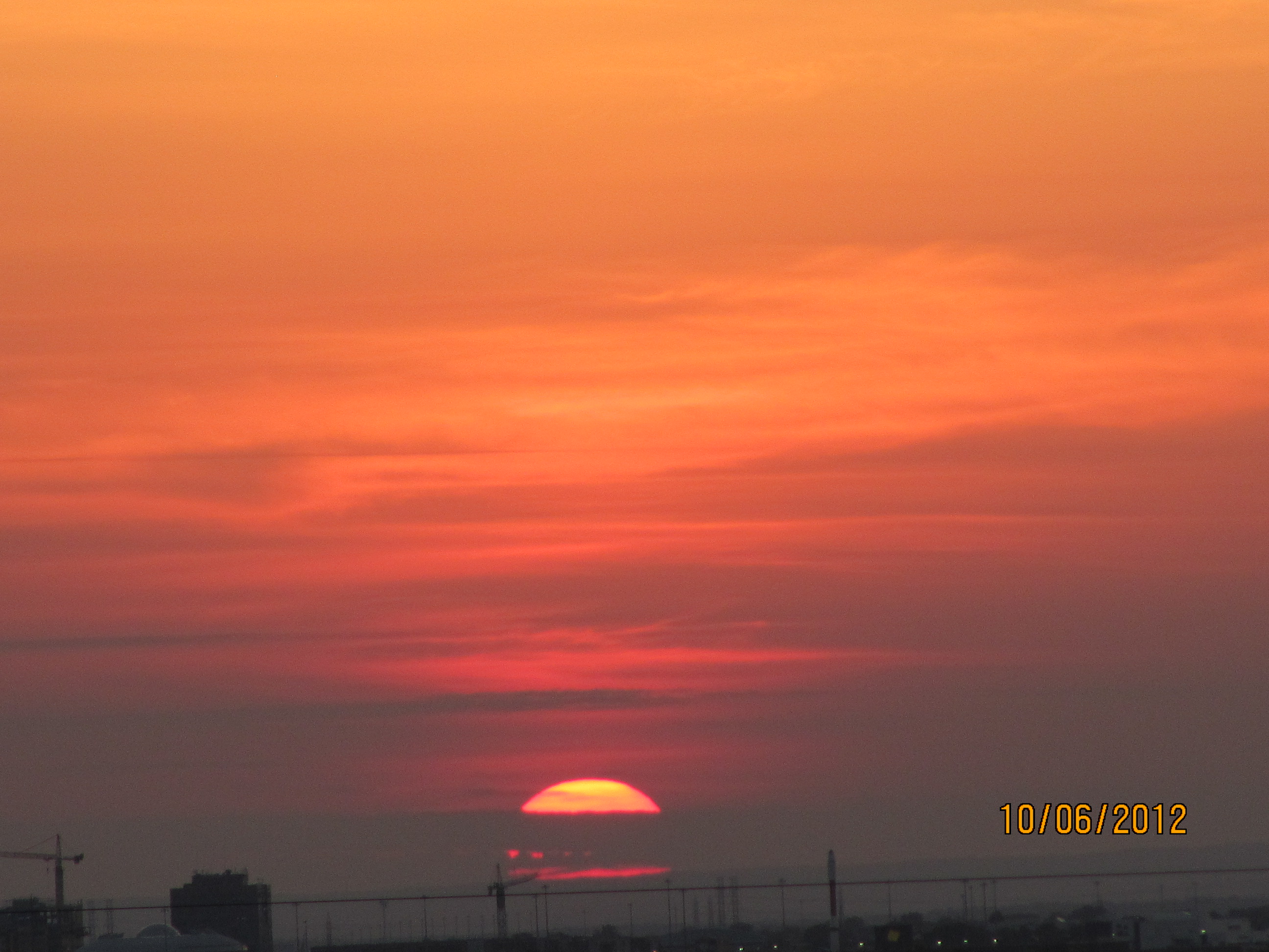 Après avoir flâné dans l'ambiance des Francofolies et mangé quelque peu, imaginez que nous avons couru après le coucher de soleil. D'abord aux remparts de l'Université de Montréal, mais là il aurait fallu attendre plus d'une demie-heure. Puis Lui a eu l'idée de courir vite à la maison pour aller sur le toit de l'immeuble, au-dessus du 10è étage. Spectaculaire coucher de soleil que voici!