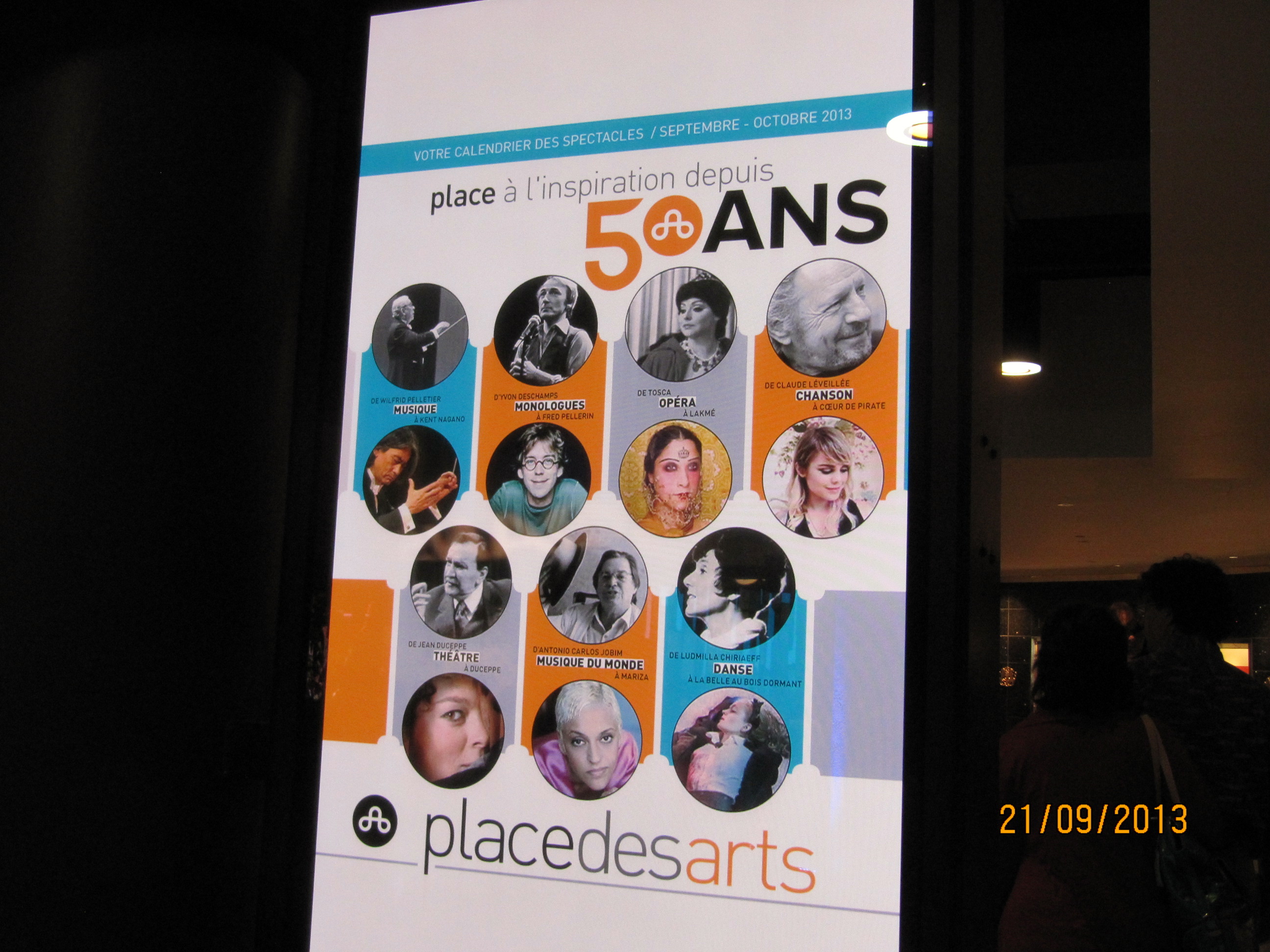 Ce soir, soirée à l'OSM. La Place des Arts est parée de tapis rouge et d'un immense bouquet de fleurs pour fêter ses cinquante ans. Gros bonnets et cocktail que nous entrevoyons à la sortie du concert. Comme les cinq salles sont occupées, en plus de l'événement, imaginez l'affluence. Nous sommes même arrivés très tôt pour être sûrs d'avoir une place de stationnement.