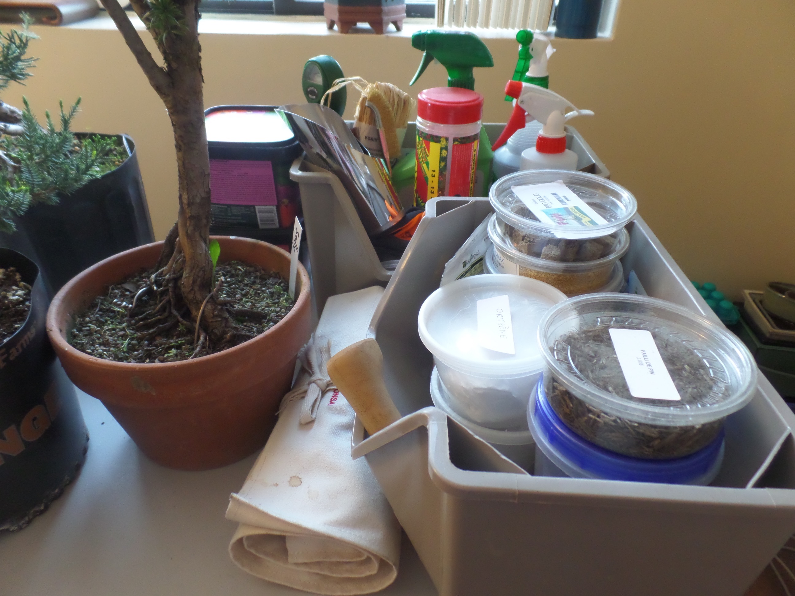 Il est bon de se sentir ordonner, les outils prêts. Eau, soleil, engrais et soins pour ces petits arbres et le tour est joué!