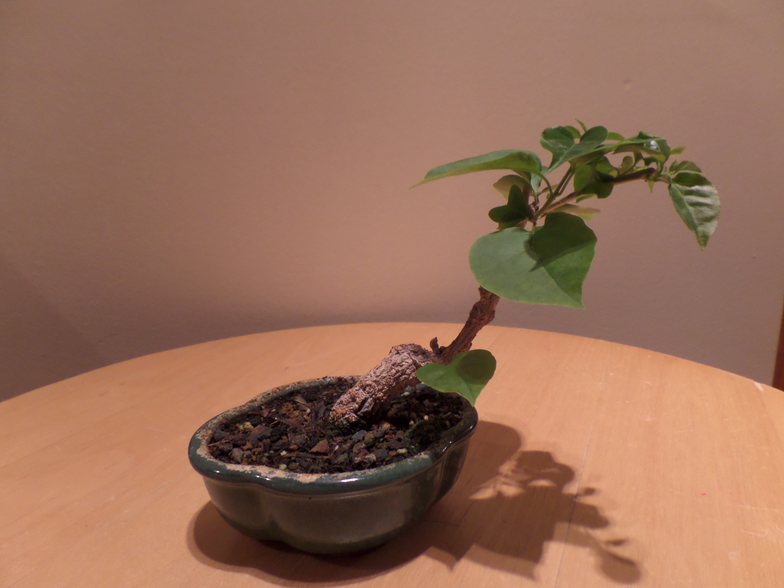 Sur la première photo, il était encore sous ma garde et présentable, lui qui a déjà perdu toutes ses feuilles, dégringolé du toit d'une voiture en marche et quoi encore!