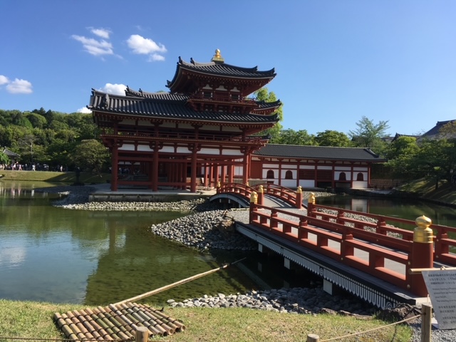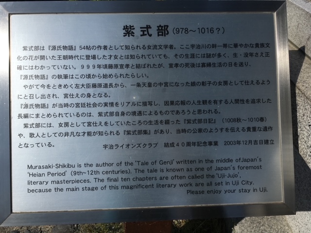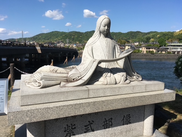 En mai 2017, je suis passée à Uji-shi. Je me souviens du pont sur la rivière Uji, Ujikawa. Impossible de prendre une belle photo du pont qui est bondé de touristes en plus d'une procession costumée très colorée. À proximité du pont, j'ai pris une photo de la statue de Murasaki Shikibu, l'auteur du Dit de Genji, ou Roman de Genji. Nous avons aussi visité le Byōdō-in, un temple bouddhiste.